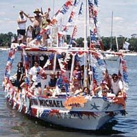 A ceremonial blessing, given by a local Catholic priest, marks the beginning of the shrimp fishing season. Even though it had its origins in ancient times in Europe, the first Blessing of the Fleet in the Biloxi Bay was given in 1929, and now takes place annually in a colorful procession in the Mississippi Sound. The ceremony begins with the dropping of an evergreen wreath into the Sound in remembrance of fishermen who have been lost at sea. Then a procession of more than 30 shrimp boats files past the anchored "Blessing Boat" where the officiating priest stands, sprinkling holy water on each of the boats and giving a blessing for each one, asking a safe and prosperous fishing season.